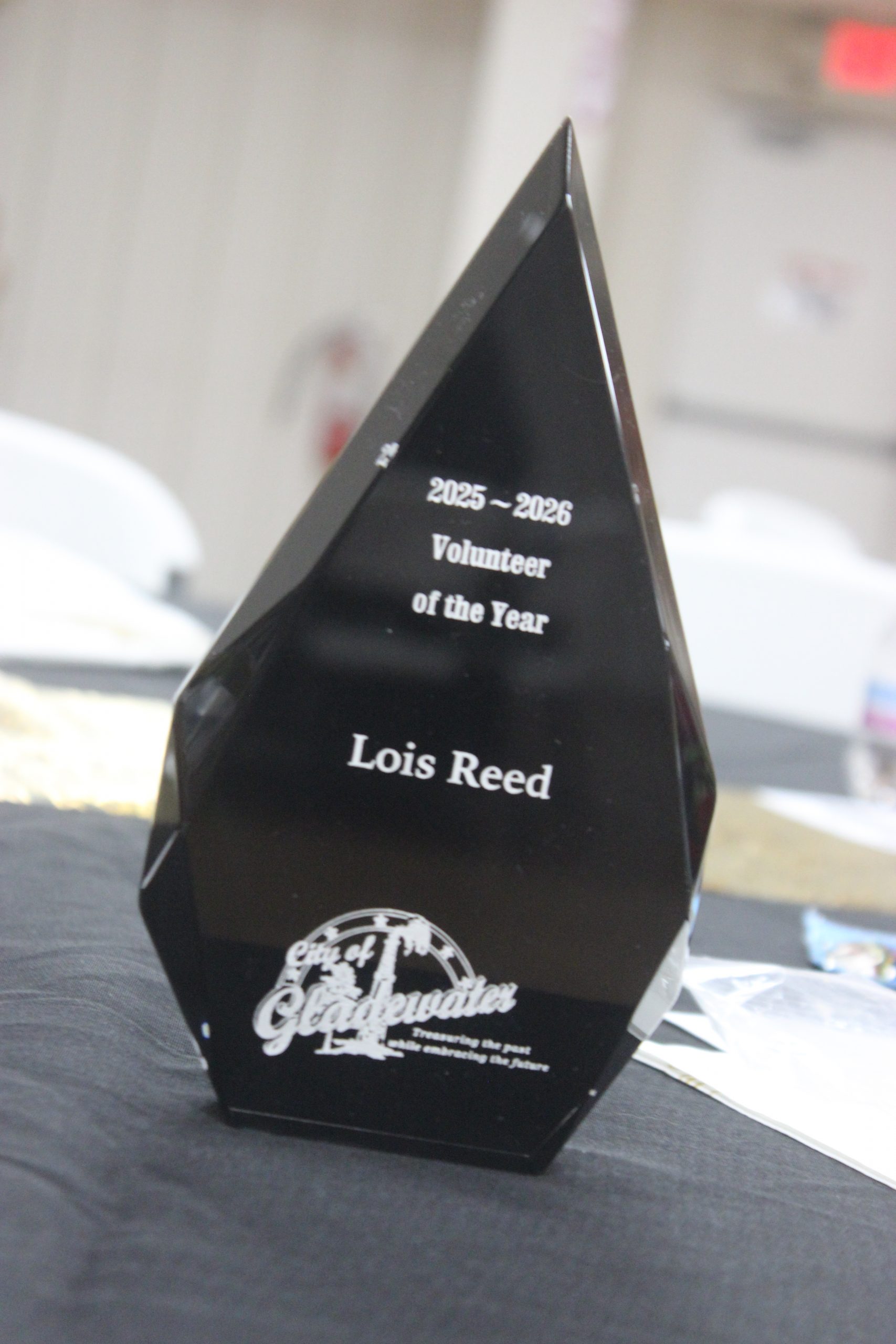 HARD-EARNED, WELL-DESERVED – Lois Reed’s was the only truly surprised face in the Former Students Association Building Feb. 24 as the City of Gladewater awarded her Volunteer of the Year 2025-2026 in the municipality’s Volunteer & Board Appreciation Banquet.