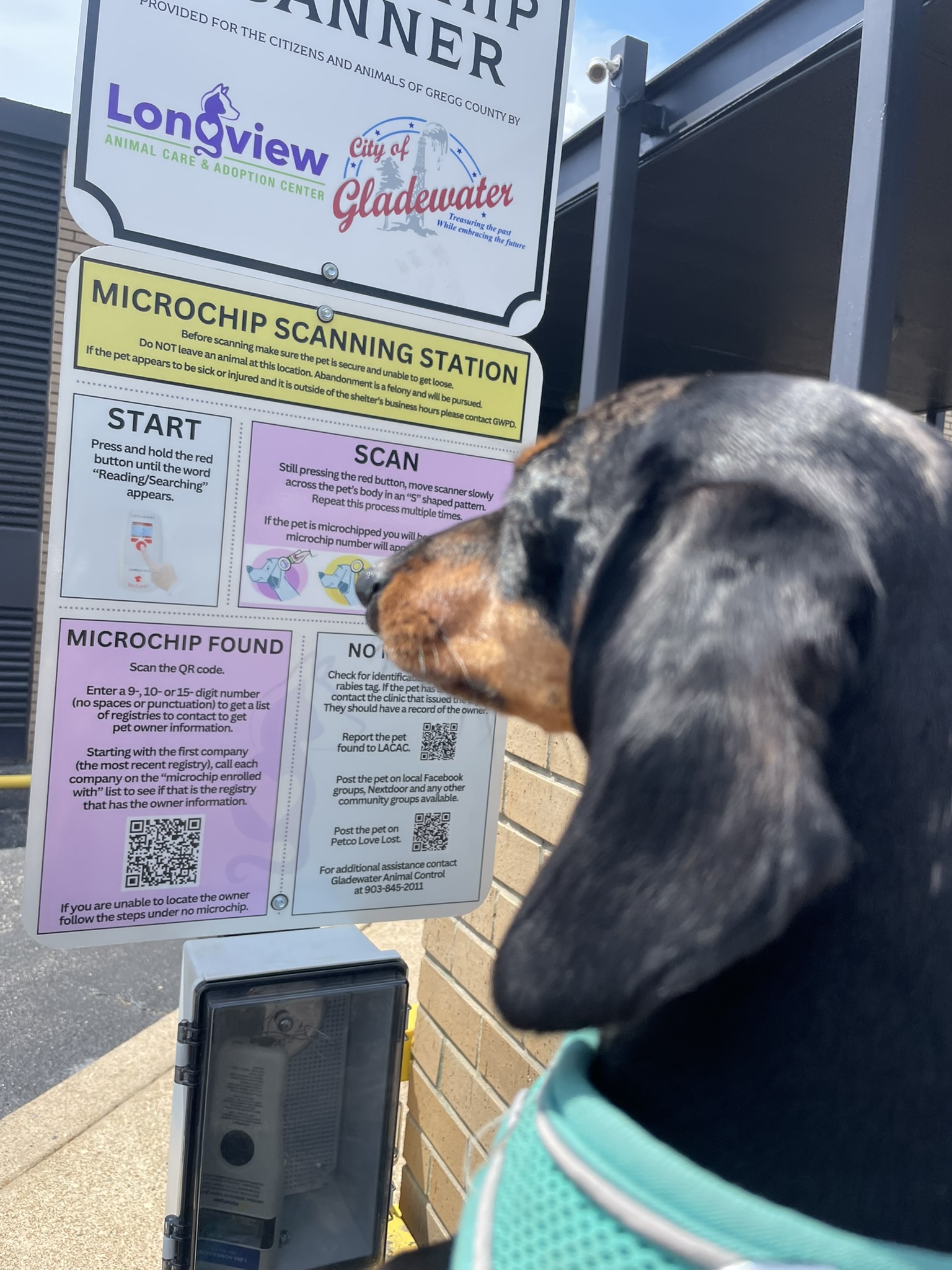 Gladewater recently became the second city in East Texas to install a public Community Microchip Scanner in partnership with the City of Longview Animal Care & Adoption Center. It’s a quick means of determining whether a stray has a family waiting and connecting with key registration details.