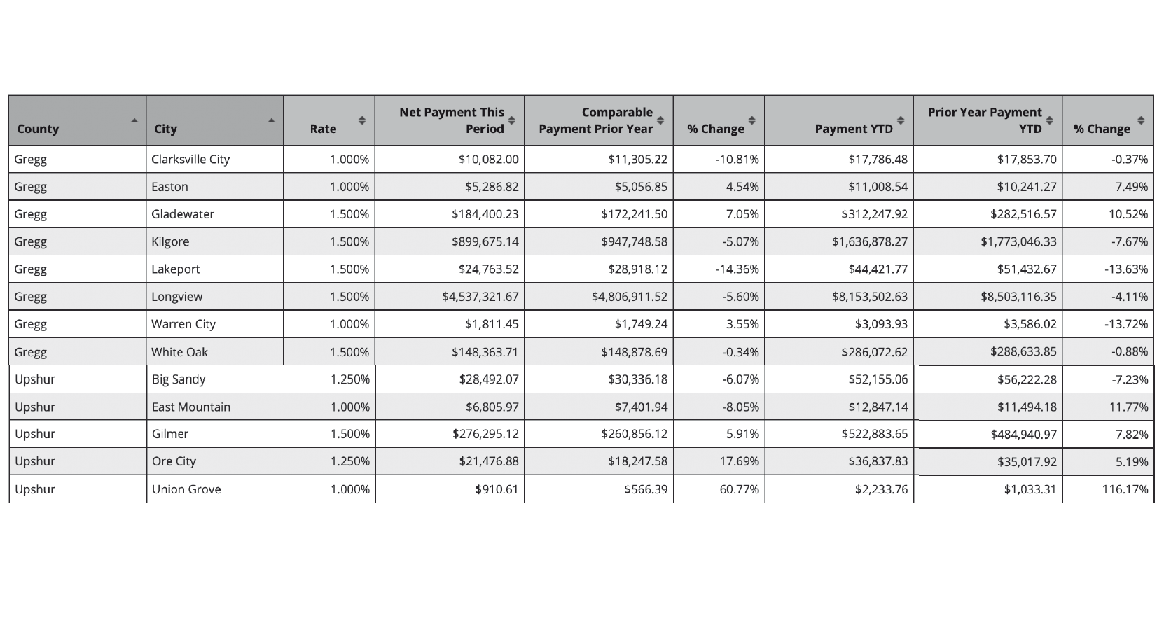 Texas Comptroller Glenn Hegar announced last week he will send cities, counties, transit systems and special purpose districts $1.3 billion in local sales tax allocations for February, 1.6 percent more than in February 2023.