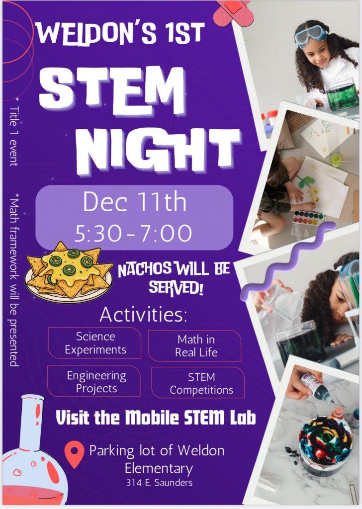 The mobile STEM lab will be stationed in the Weldon Elementary parking lot at 314 E. Saunders for all comers.