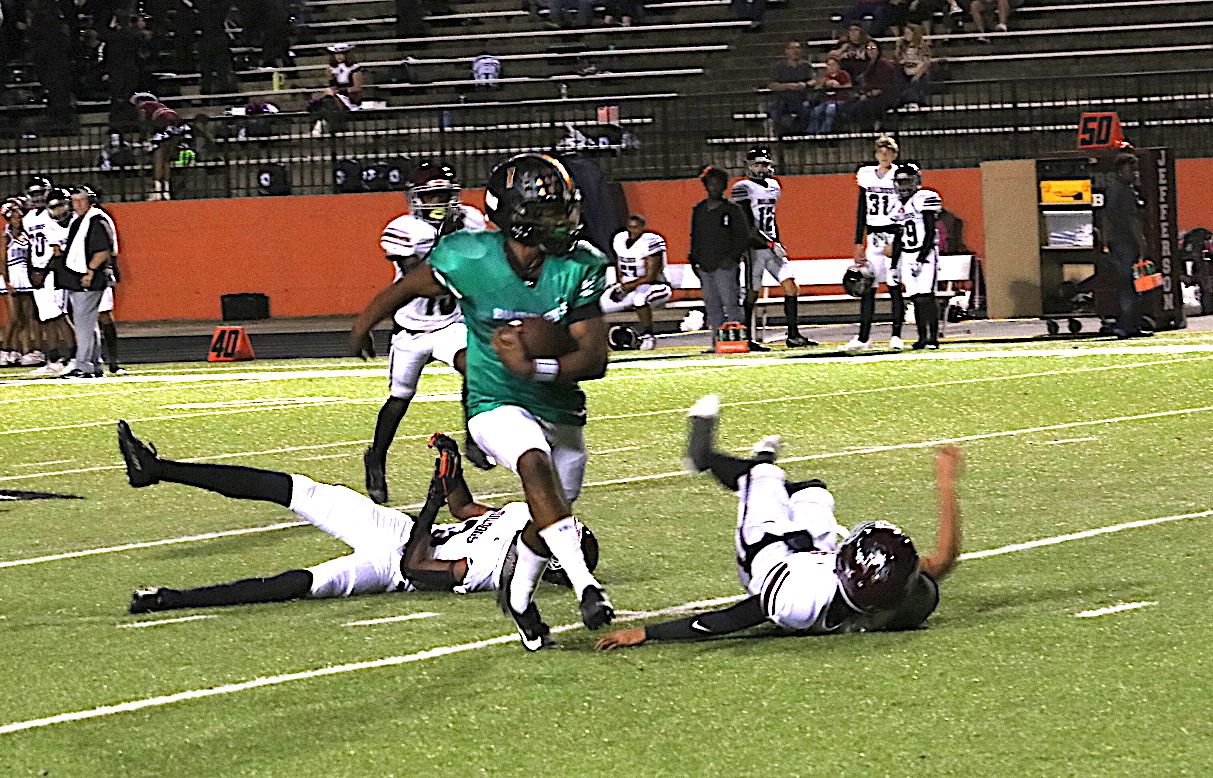 Jefferson jumped out early in the 1st quarter to a 21-0 lead. But the Bears got some momentum back on their side when Hunter Brown found Kyron Wilson for a beautiful 74 yard touchdown pass to cut the Jefferson lead to 21-7 at the half. The Bears surprised the Bulldogs and successfully recovered a onside kick to begin the 2nd half and quickly scored as Kyron Wilson found the endzone himself to cut the Bulldogs lead to 21-14 early in the 3rd quarter.