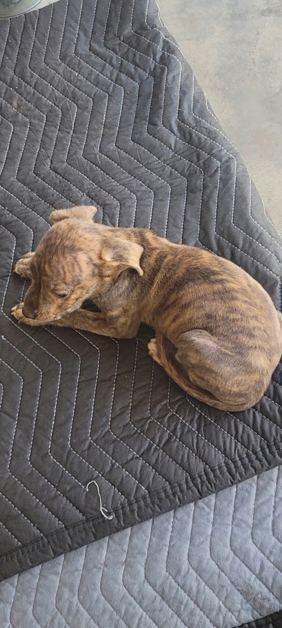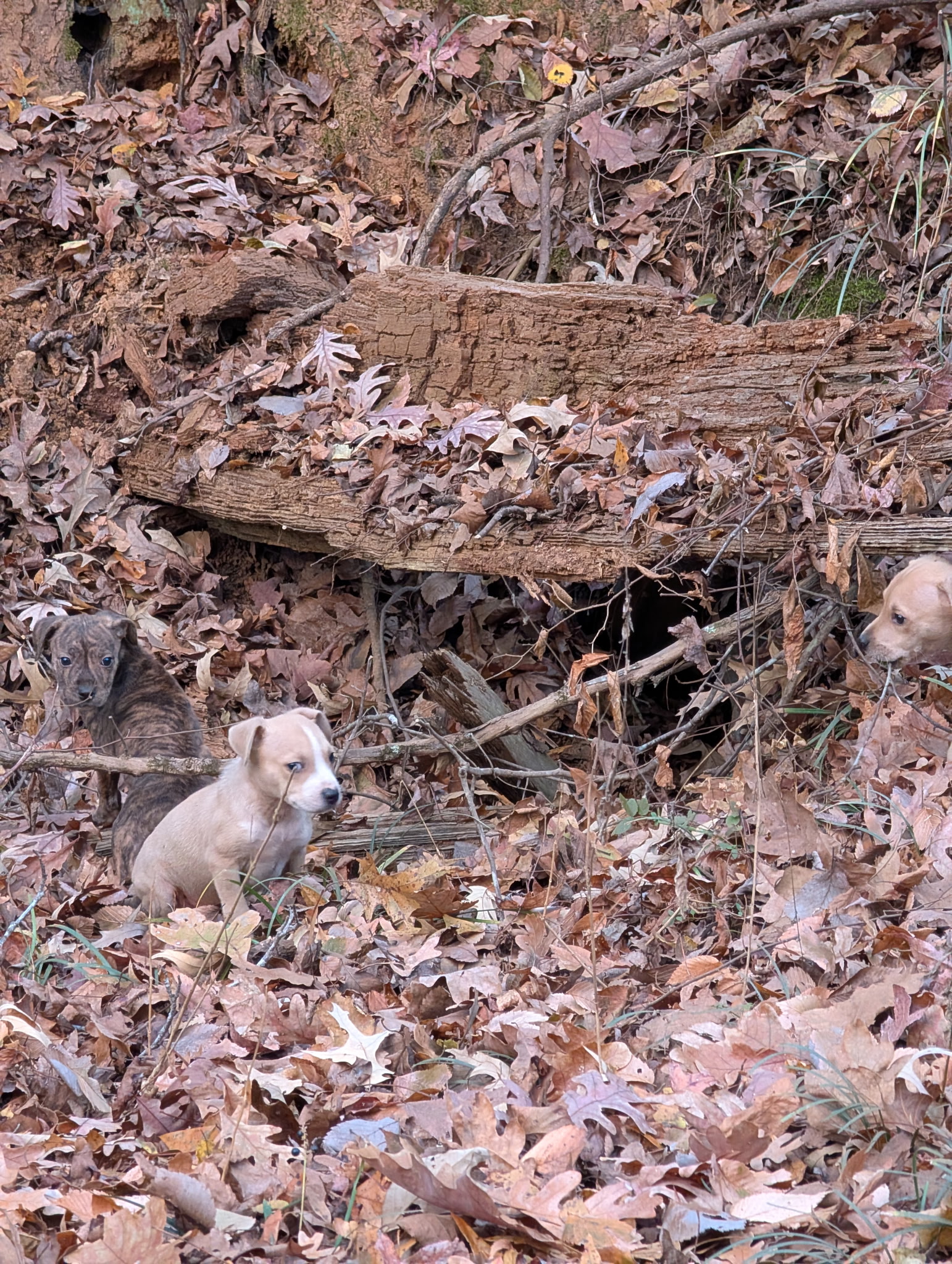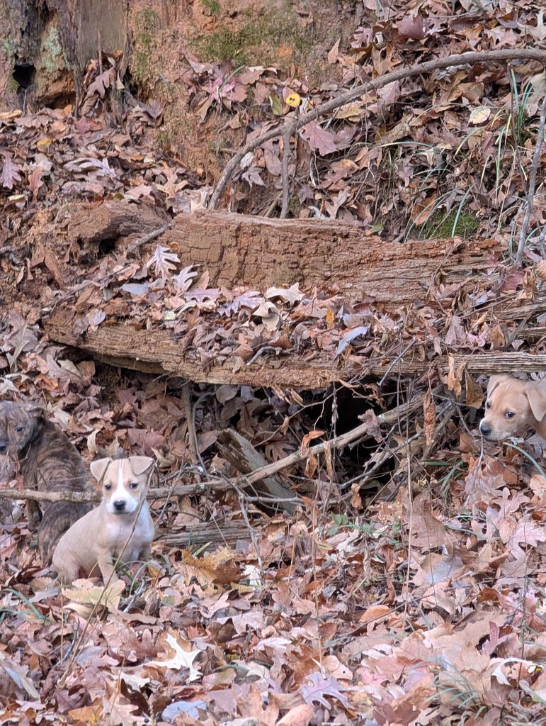 “The other two were up the road,” she said. “They were a little skinnier and probably a little hungrier, so they came running to me for help. The little runt, I named him Bay-bay.”