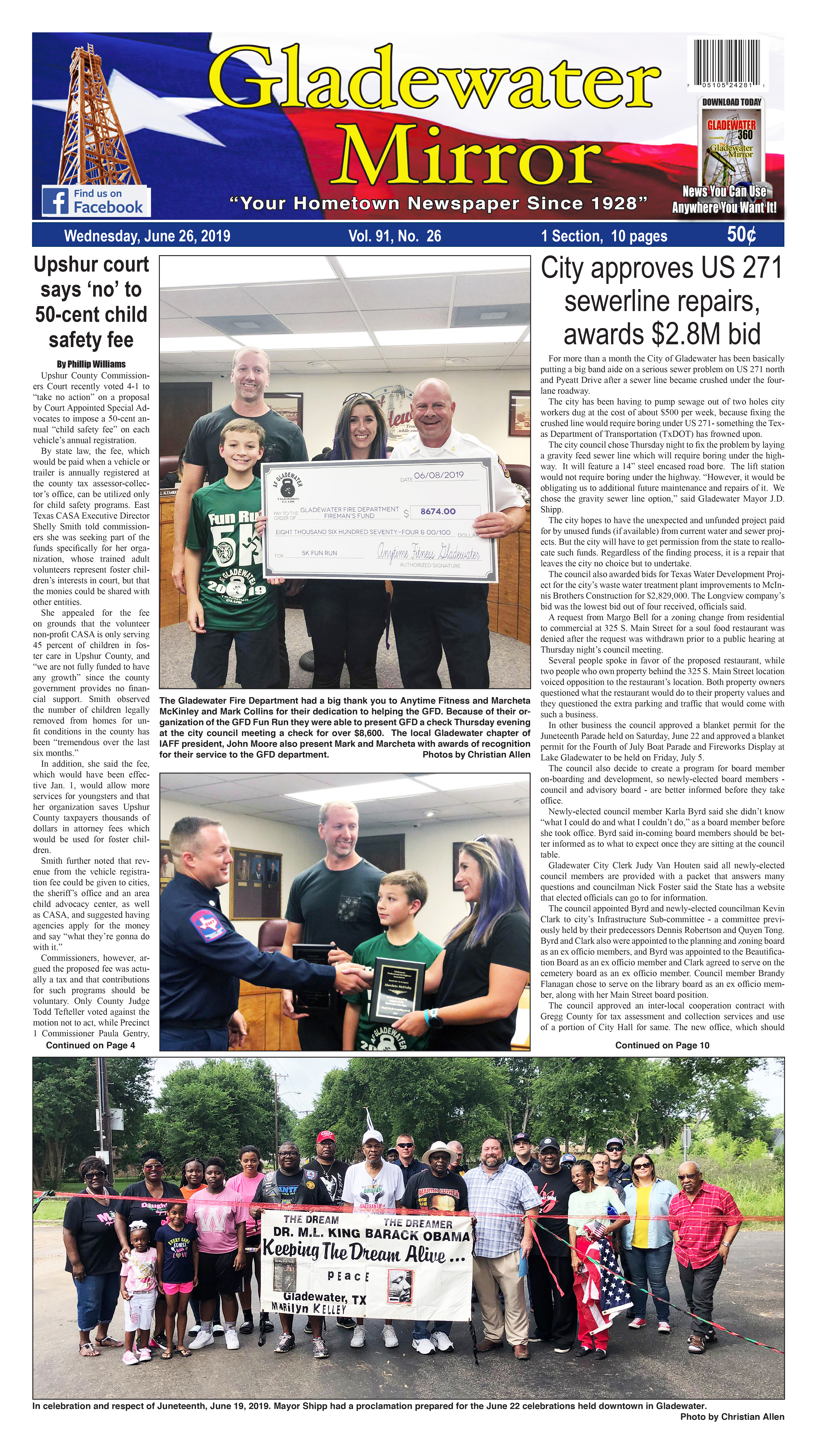 - Juneteenth was celebrated by Gladewater residents.