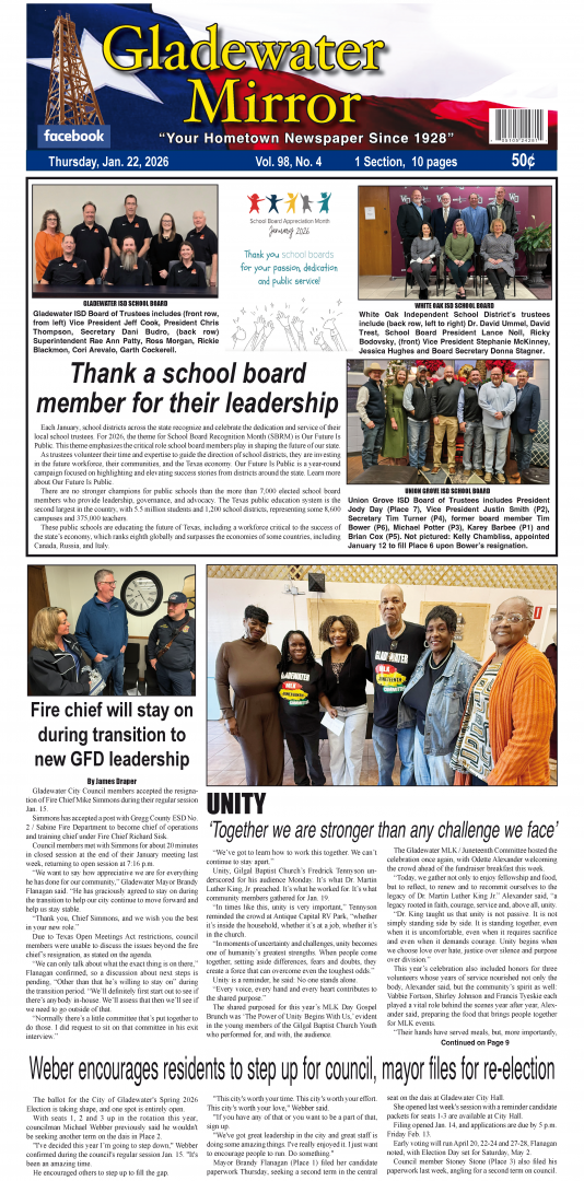 While the school’s elected officials ponder the latest information presented by members of the District Educational Improvement Committee, a public town hall meeting is set for 6 p.m. Wednesday, April 10, in the Gladewater Middle School Cafeteria.