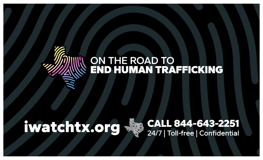 “We understand our transportation system can be a conduit for trafficking or could help victims escape, and this outreach can help our employees and Texas drivers spot the signs,” TxDOT Executive Director Marc Williams said. “Similar to a neighborhood watch program, the initiative encourages everyone to know, watch for and report signs of trafficking. Together we can make a difference.”