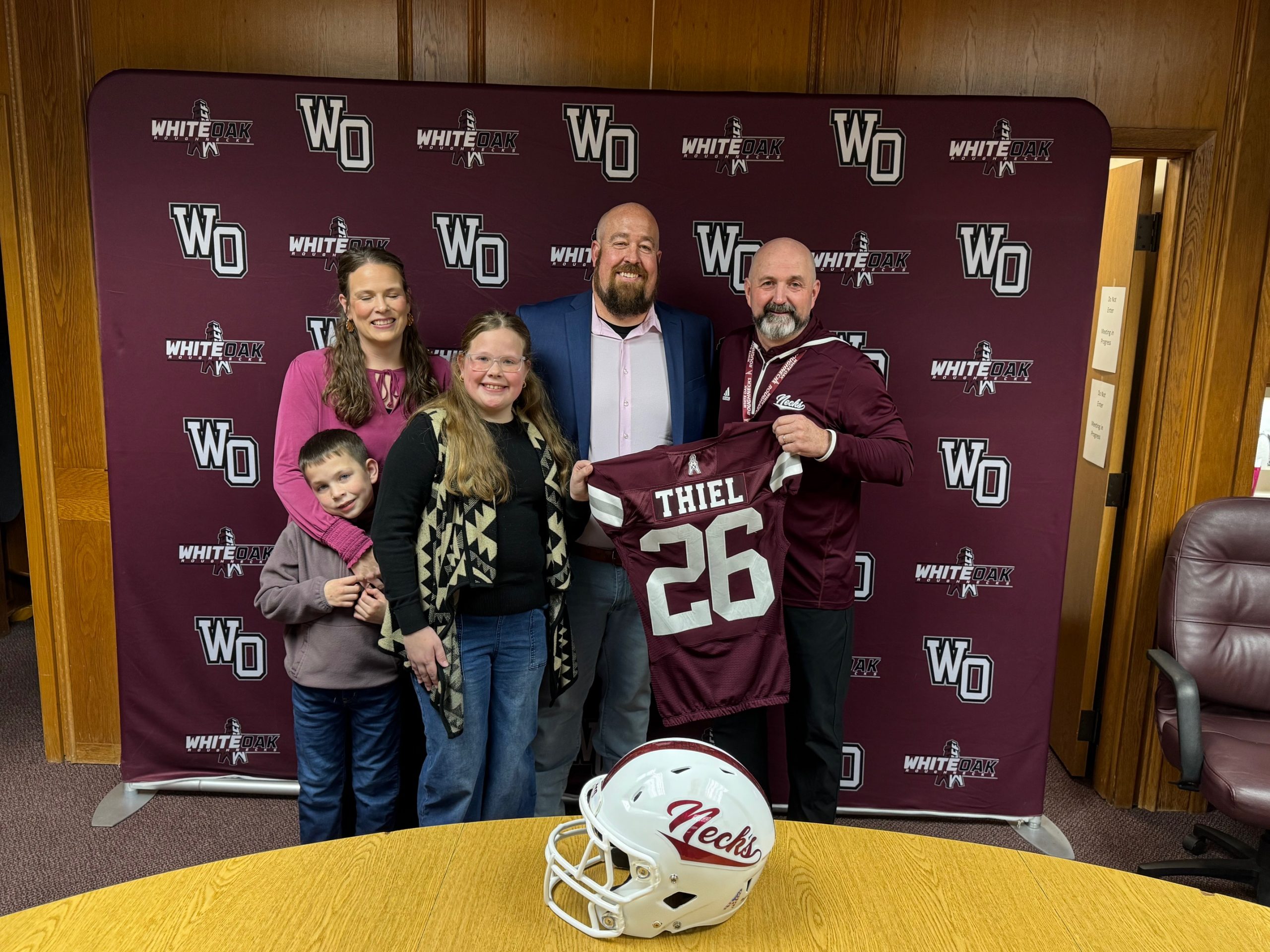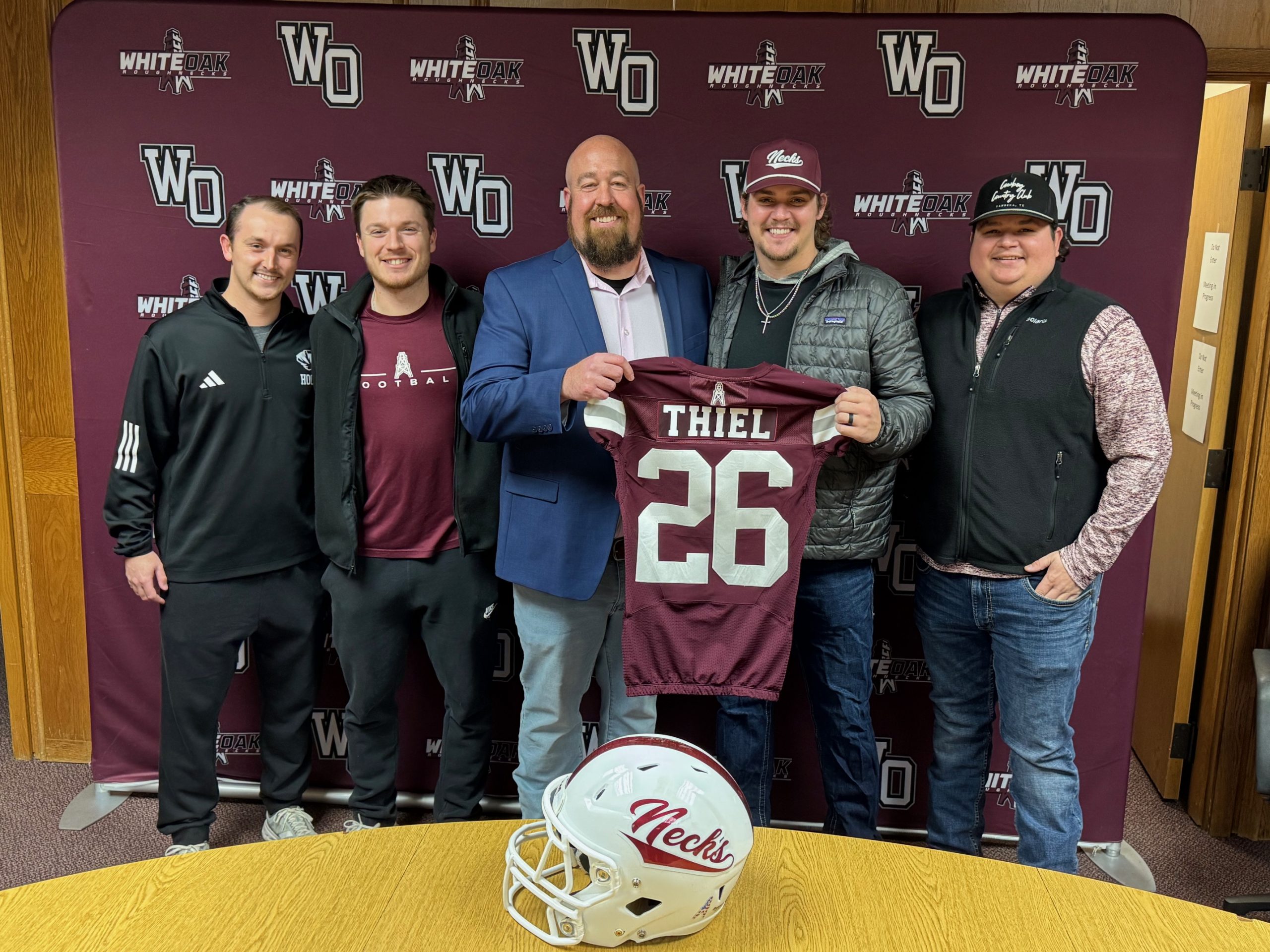 “Coach Thiel and his wife, Cara, along with their children Tatum and Bode, are excited to be back in White Oak and to help build a program rooted in tradition while raising proud Roughnecks.”
